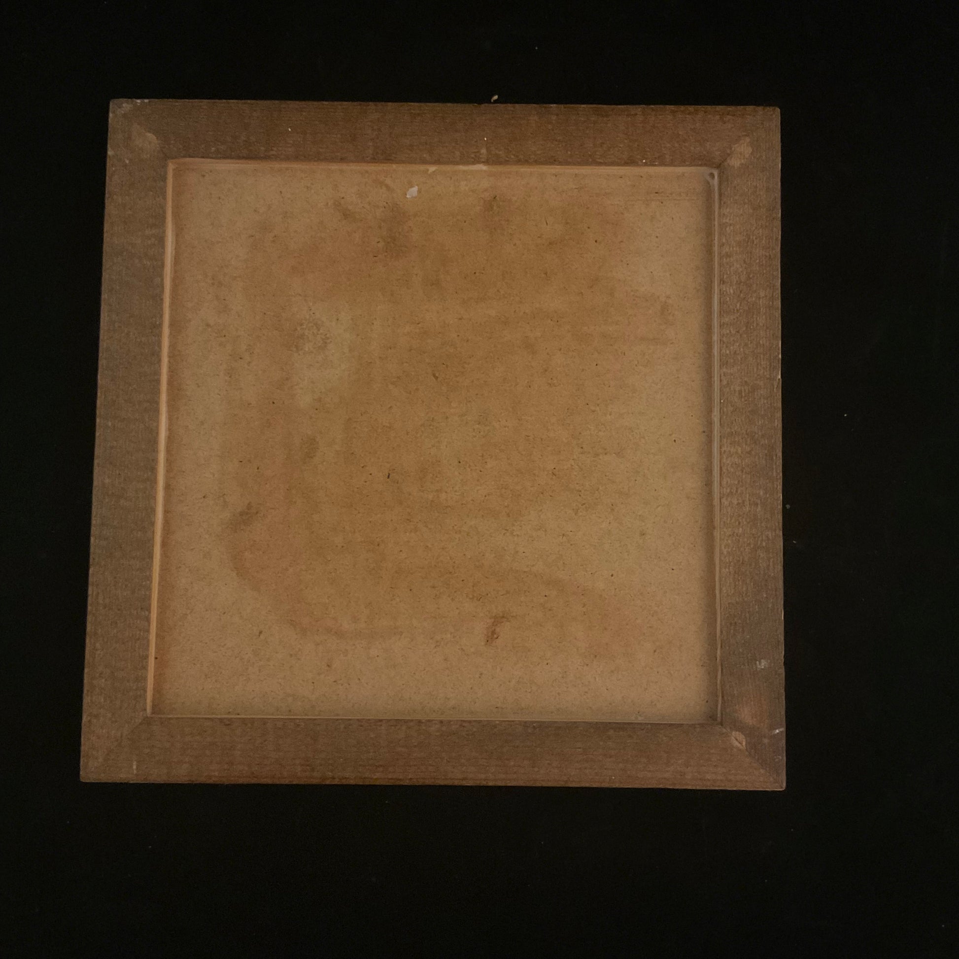 Dekorativ bordskåner med klassisk motiv fra Christiansø, trykt i koboltblåt på hvid keramisk flise og indrammet i træ. Motivet viser den historiske fæstning med Store Tårn omgivet af kanoner og ankre. Fremstillet ca. 1960–1980