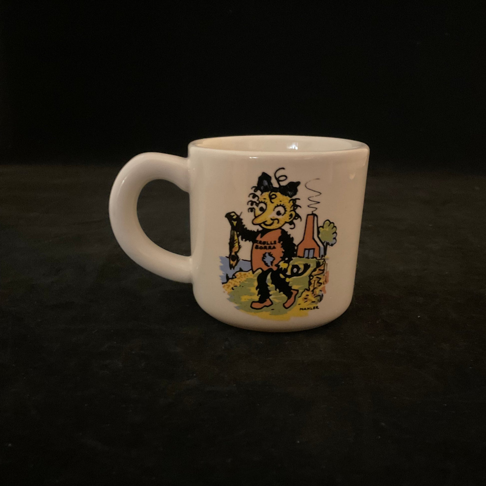 Sjældent vintage krus fra Søholm, dekoreret med de elskede trolde Krølle Bølle og hans søster Krølle Borra, tegnet af Marinus Nielsen i 1950’erne.