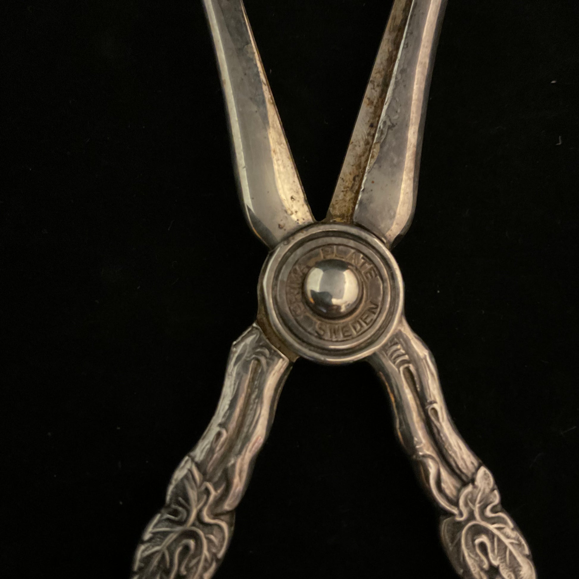 Vintage druesaks, Bruna Plate, Sweden, forsølvet med vinrankemotiv