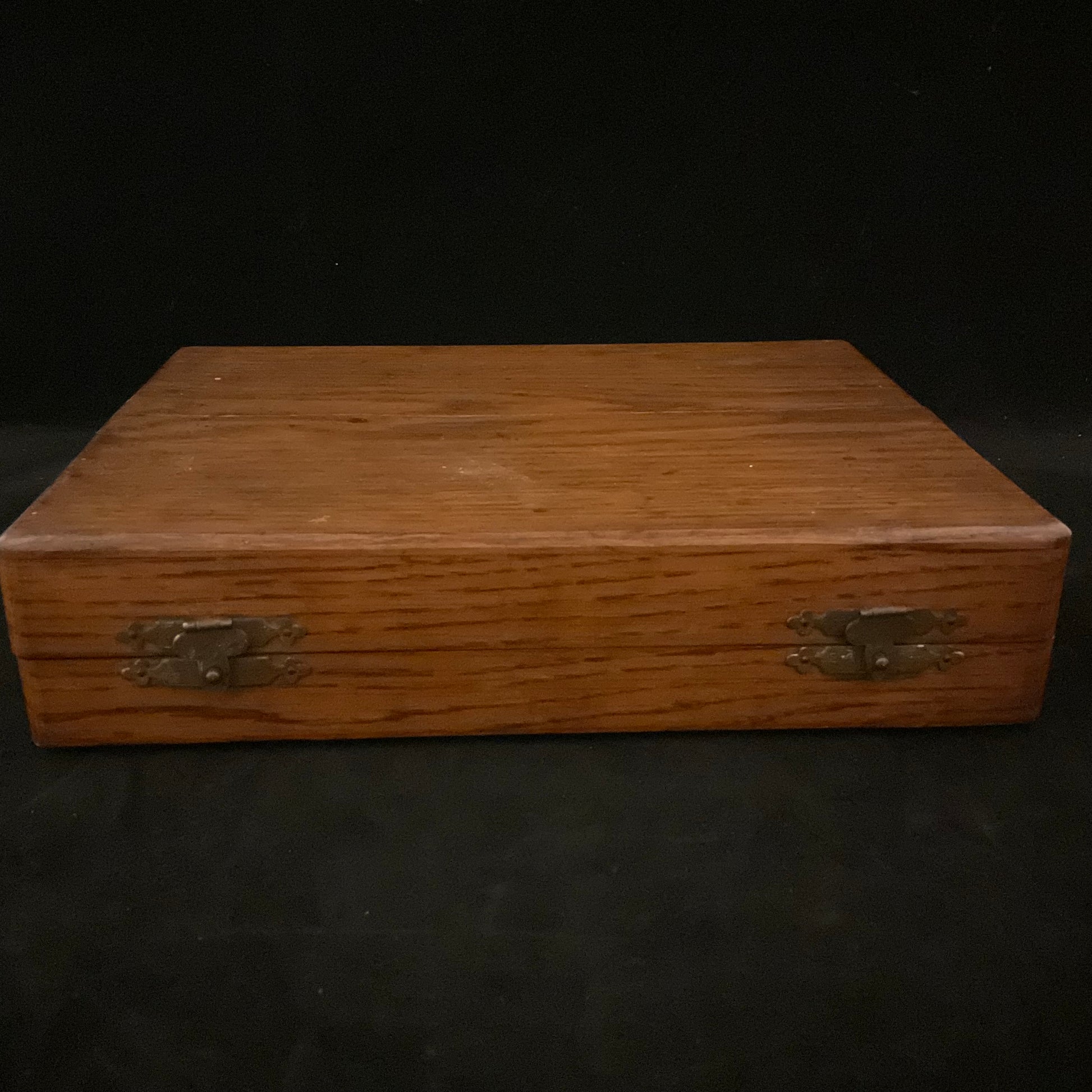 Æske (lukket) måler ca. 23,5 × 17,5 × 5 cm