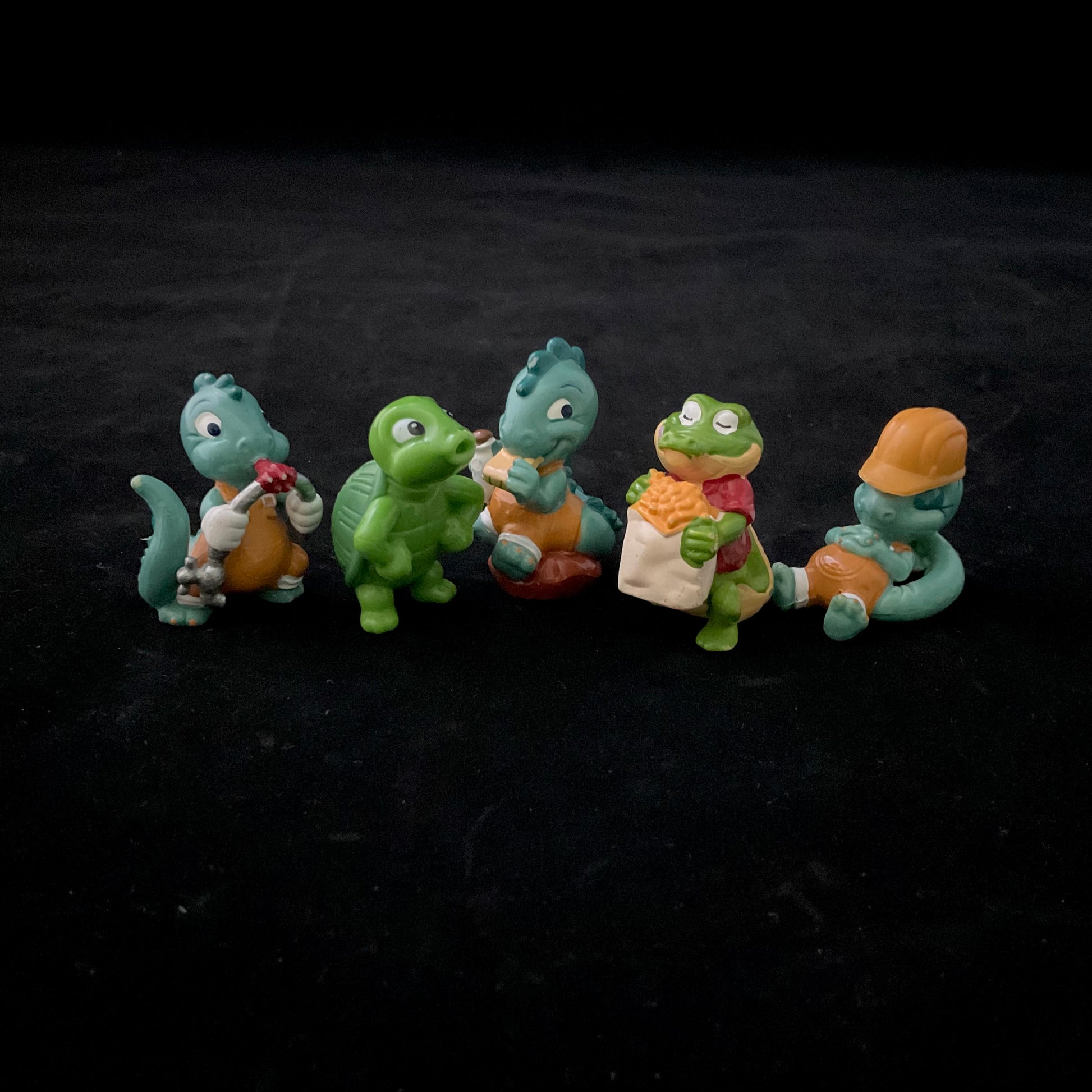 Fem figurer fra 90`erne, heraf en jubilæumsfigur (den grønne skildpadde, der kan sprøjte vand) Sælges samlet, fin stand.