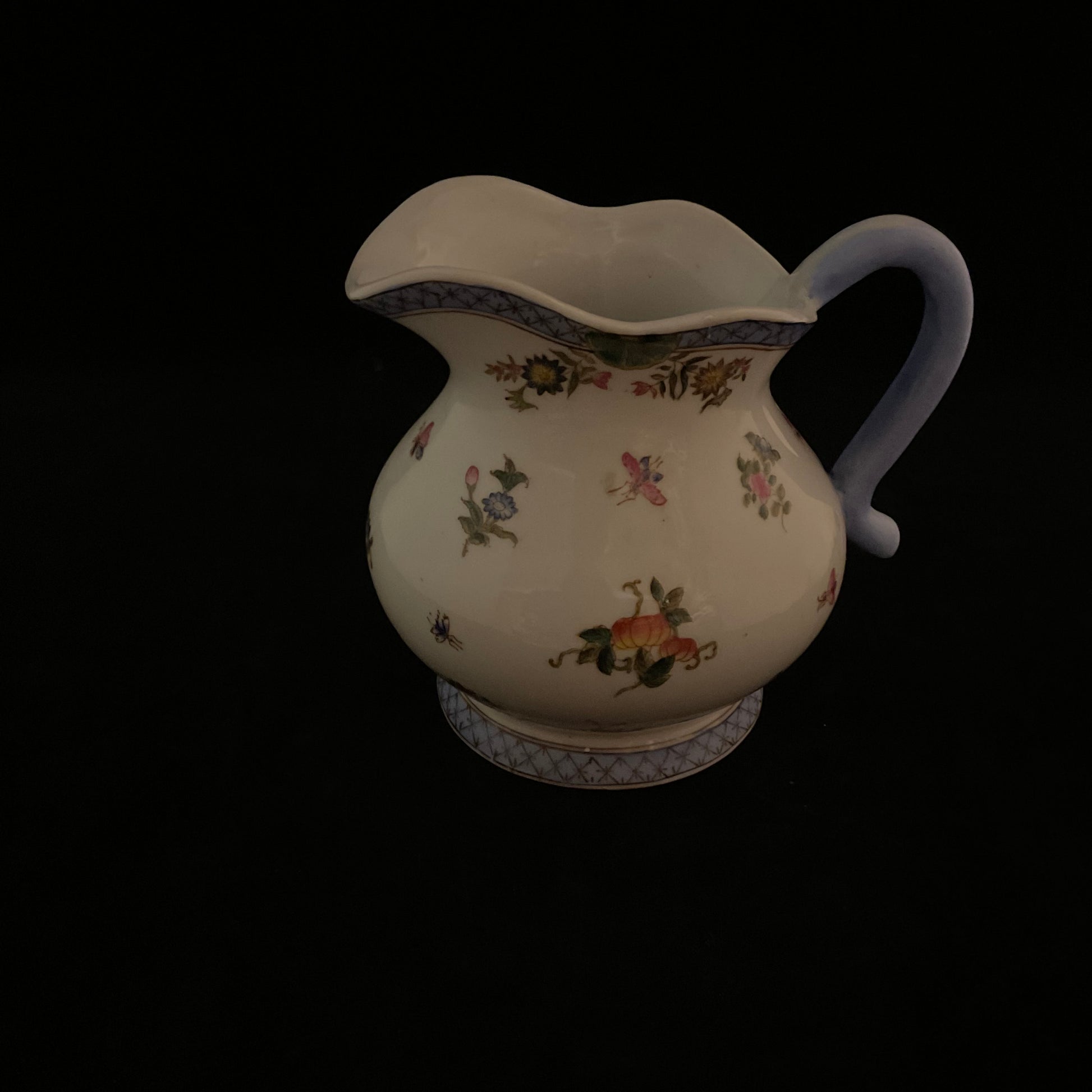 Skøn og køn kande, udført i Meissen/Herend-stil, sandsynligvis fra Tyskland eller Bøhmen, ca. 1920-50.