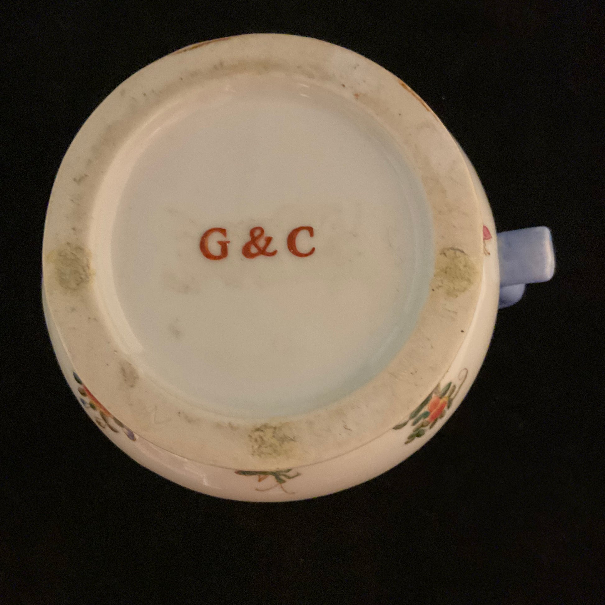 Dekoreret med blomster og insekter. Stemplet “G&C”
